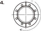 対角線上の同じ番号を閉めていく(ボルト数が4で割れる数字の場合は、十字の形で締付けることになります。) |